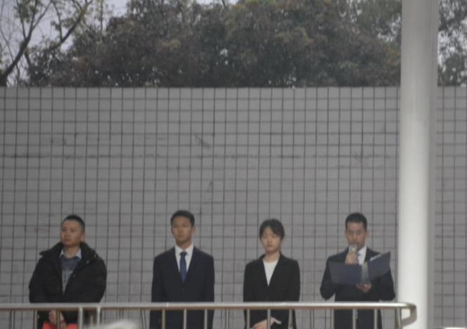 最后各年级辅导员分年级讲评,升旗仪式圆满结束。