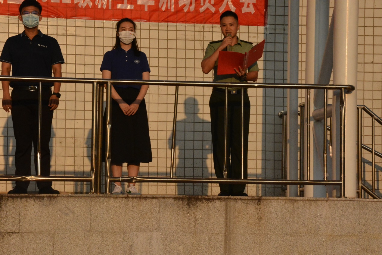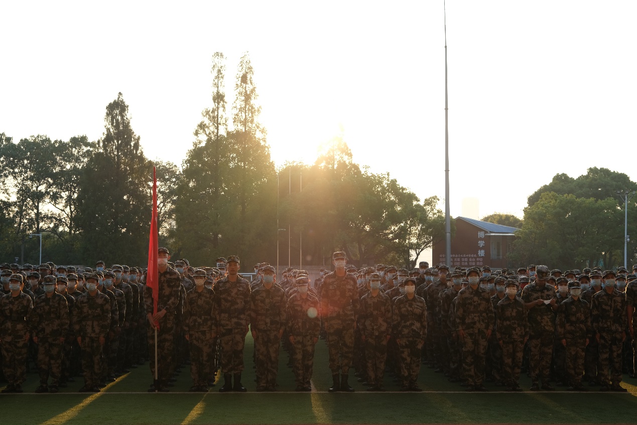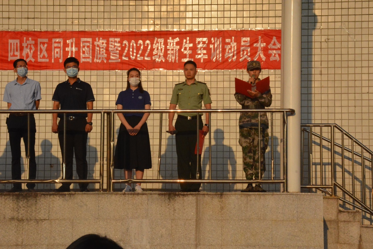 张自强介绍了院领导、来宾及军训教官。新生军训动员大会在激昂的国歌中拉开帷幕。