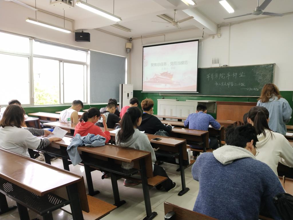 (通讯员 刘燕 杨金灵)5月15日中午11点40分,英国365集团本科生第三党支部第三小组全体成员于教学楼304教室开展以“聚焦总任务、党员当模范”为主题的学习活动,主讲人徐彩。