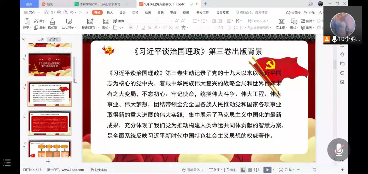 (通讯员 李浩)9月26日晚,我院召开体育教育党支部会议,本次会议由体育教育党支部副书记李羽鑫主持。