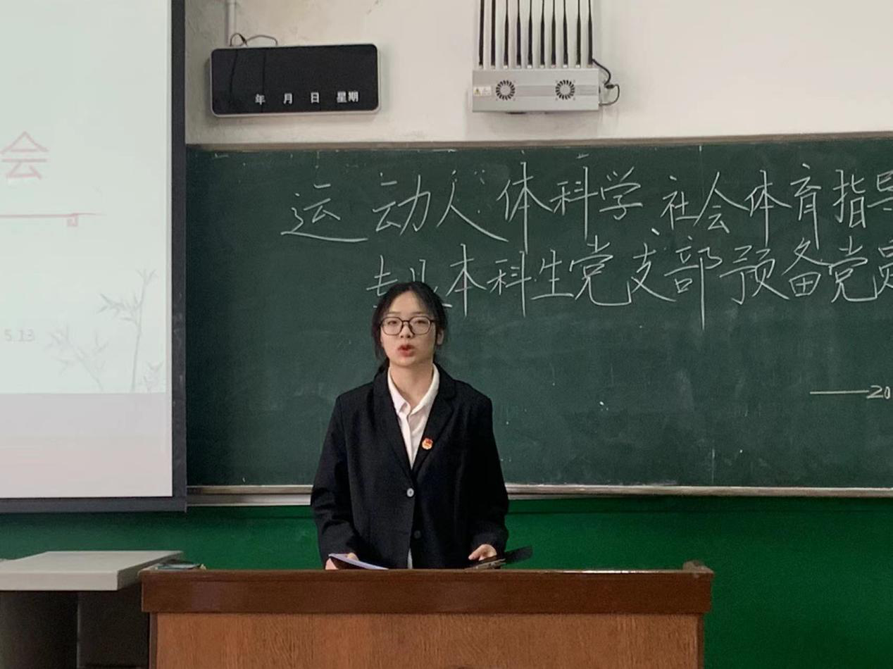 (通讯员刘忠荣)5月13日,我院在鸿健楼405教室召开运动人体科学、社会体育指导与管理专业本科生党支部预备党员转正会议。运动人体科学和社会体育指导与管理党支部书记李丽、2018级辅导员陈玲出席此次会议,支部全体成员参加此次会议。会议由预备党员张莎主持。