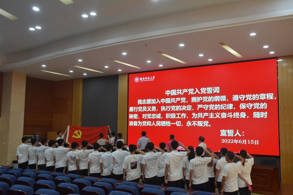 毕业生党员代表瞿友福发言,他表示,从今天起将带着老师们的叮咛和祝福,带上最初的梦想,踏上新的征程。他表示,聚是一团火,散是满天星,感恩在师大的每一段相遇,感恩师长,感恩同学,感恩父母,不论走到哪里,都会秉承“仁爱精勤”的校训,恪守“厚载博学,行健自强”的院训,做一名优秀的师大人。