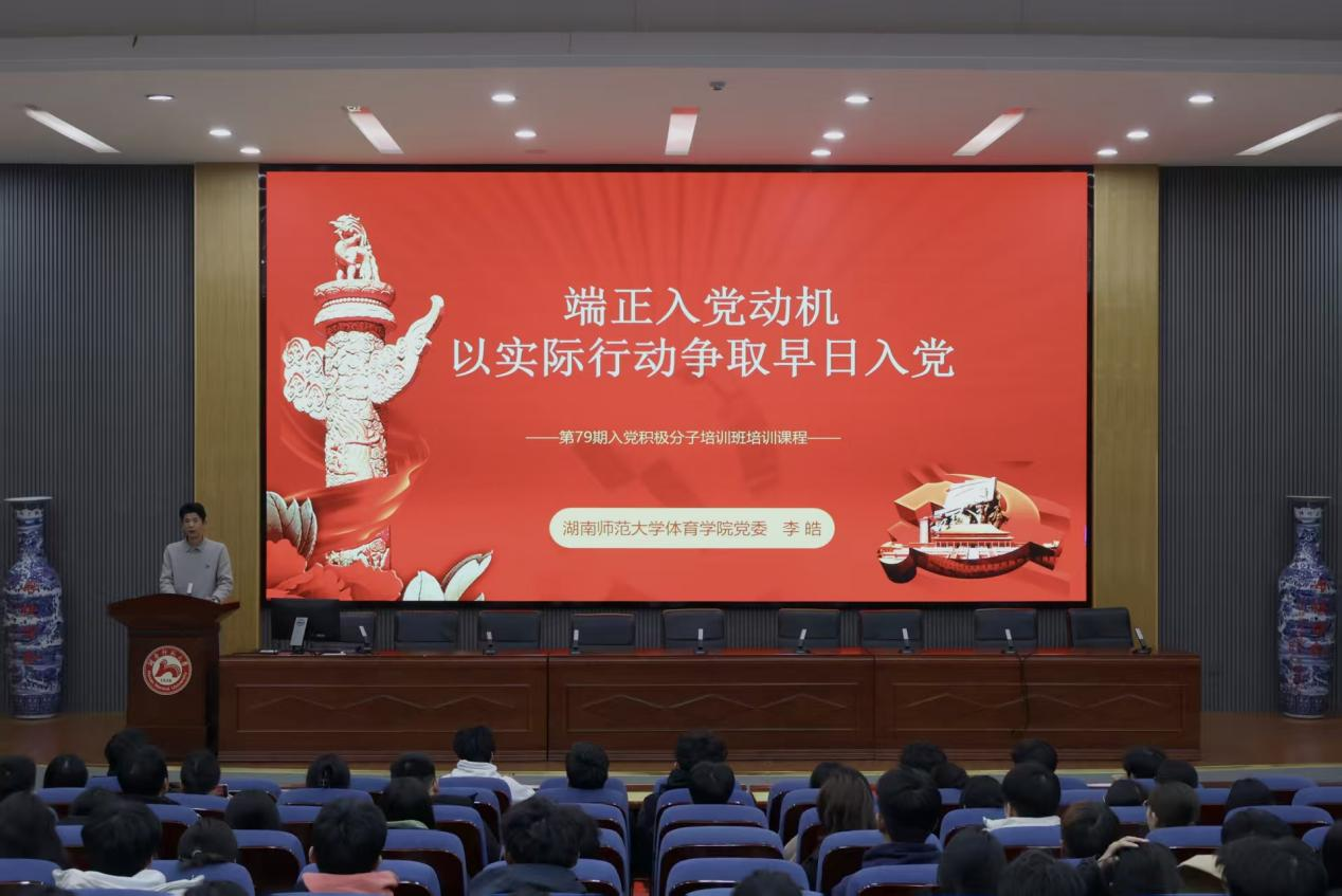 (通讯员:黄紫望)11月25日晚,英国365集团第79期入党积极分子培训班开班仪式暨第一堂课在鸿建楼二楼阶梯教室举行,学院党委副书记李皓担任主讲人,全体入党积极分子学员参加培训。