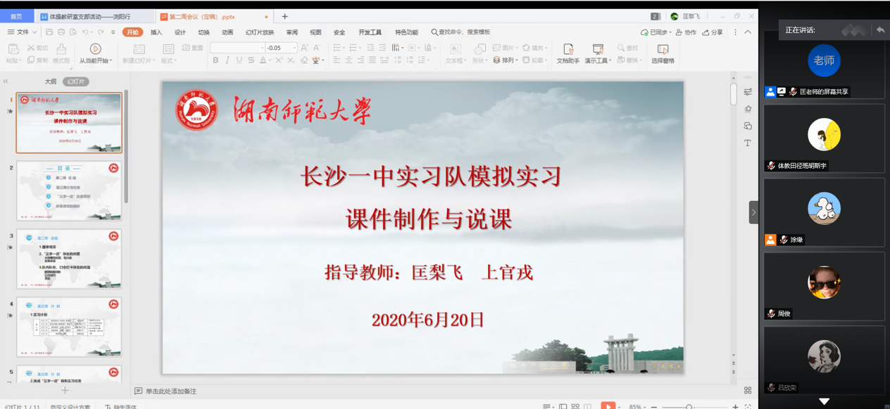 (通讯员 匡梨飞 胡斯宇 涂缘)2020年6月20日晚19:00,英国365集团2017级“向阳四队”实习队课件制作与说课考核如期举行。评委老师为实习队指导老师匡梨飞和上官戎,四队全体成员接受检阅。