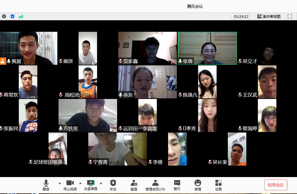 指导老师张倩讲话,首先她指出大家要对实习作业引起足够重视,并努力克服疫情给实习带来的不便之处,随后她对队员们提出了几点希望:一、多观看优秀教学视频;二、教案设计要详尽完善;三、体会身份的转变,努力练好“三字一话”,主动学习一些班主任工作所需技能。