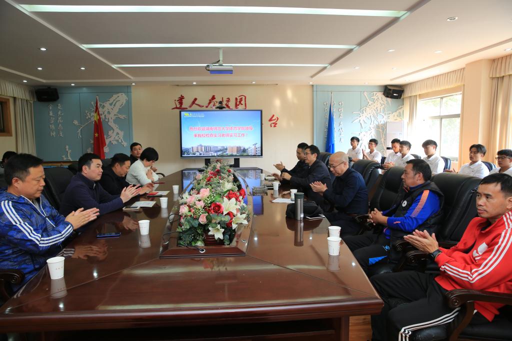 (通讯员 余妙林 吴潇威)11月12日下午两点半,英国365集团副书记李波、教务办主任胡文烨、20级辅导员张自强到常德市第六中学检查常秋九队教育实习工作并在科教楼二楼会议室开展了教务实习工作报告会,出席此次会议的有我院三位领导、常德市六中党委书记程光明、校长李井岗、副校长杨贤琼、副校长李卫东、副校长刘云高、学生科科长李健、教务科科长卓俊英,常德市六中实习队指导老师陈瑞宁、刘斌、全体体育老师、实习老师,会议由卓俊英主持。