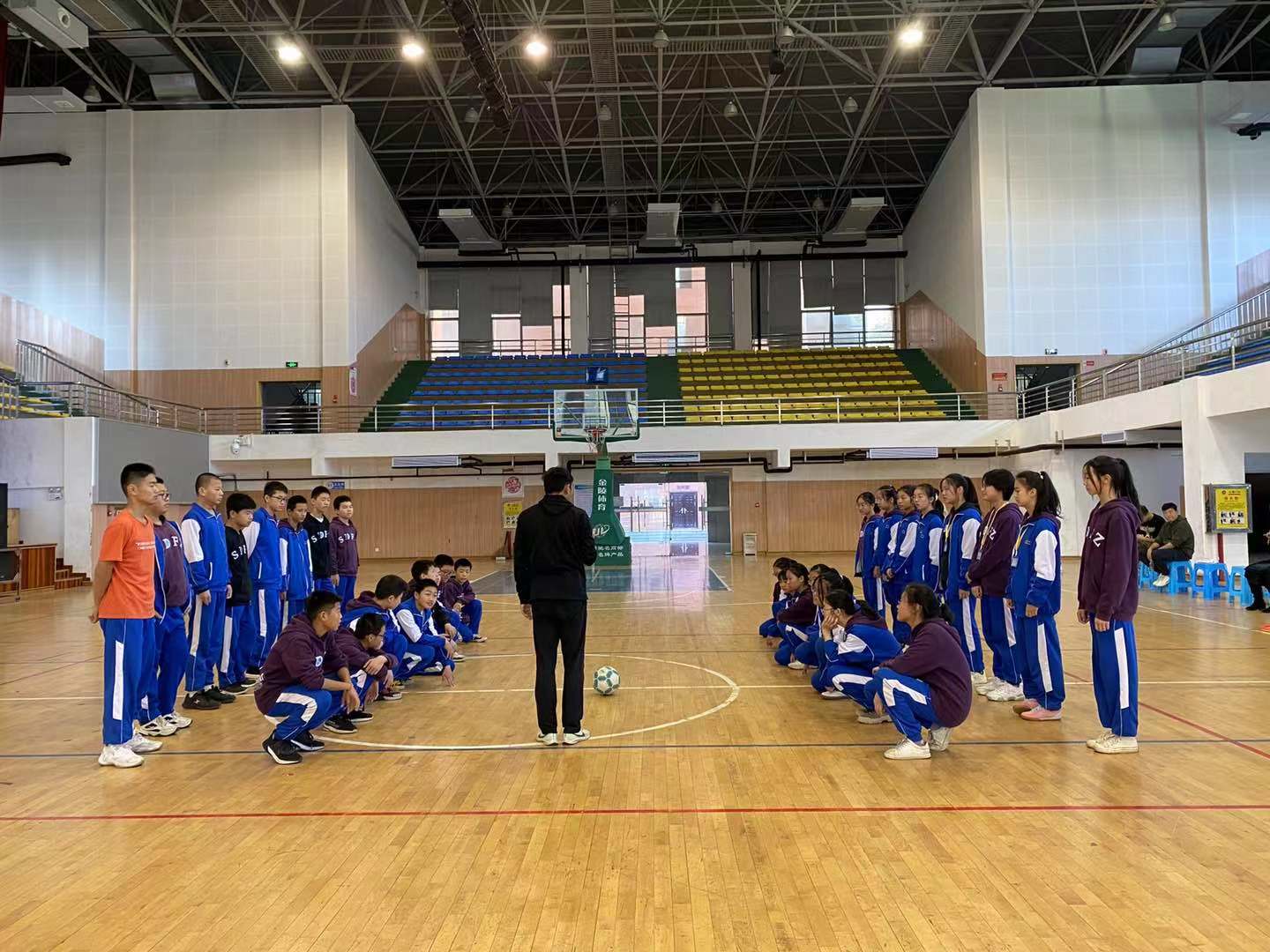 随后,全体师生老师来到学校体育馆观摩了实习队成员黄瑞峰老师的足球脚内侧传球的展示课,本课黄瑞峰老师运用了多媒体教学,让同学更加直观的观看了脚内侧传球技术动作及动作要领,发现该动作的易犯错误,从而在练习的过程中更加明确联系内容,使这次公开课更具特色。