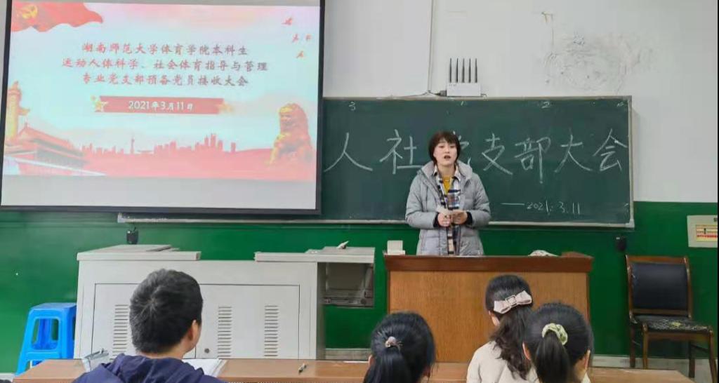 (通讯员 彭美 刘娟)2021年3月11日中午,英国365集团本科生人体社体党支部在鸿健楼305教室召开人体社体党支部接收预备党员会议。出席此次会议的有支部全体成员、需要发言的发展对象及其介绍人,此次会议由党员谭燕蓉主持。