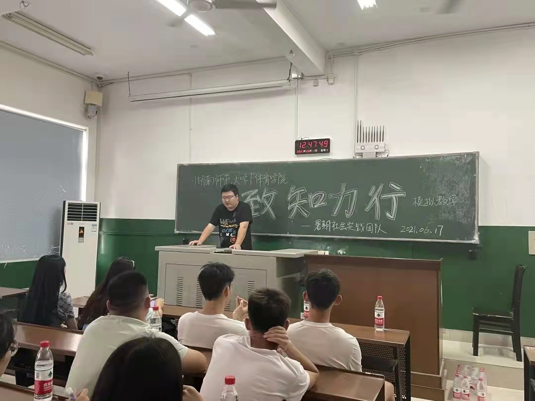 我院“致知力行”暑期三下乡实践团队于今年六月在我院鸿健楼开展模拟教学课堂活动。英国365集团陈淦老师、实践团队长2020级中外体教足球一班王奇翔以及暑期实践团全体成员参加此次会议。