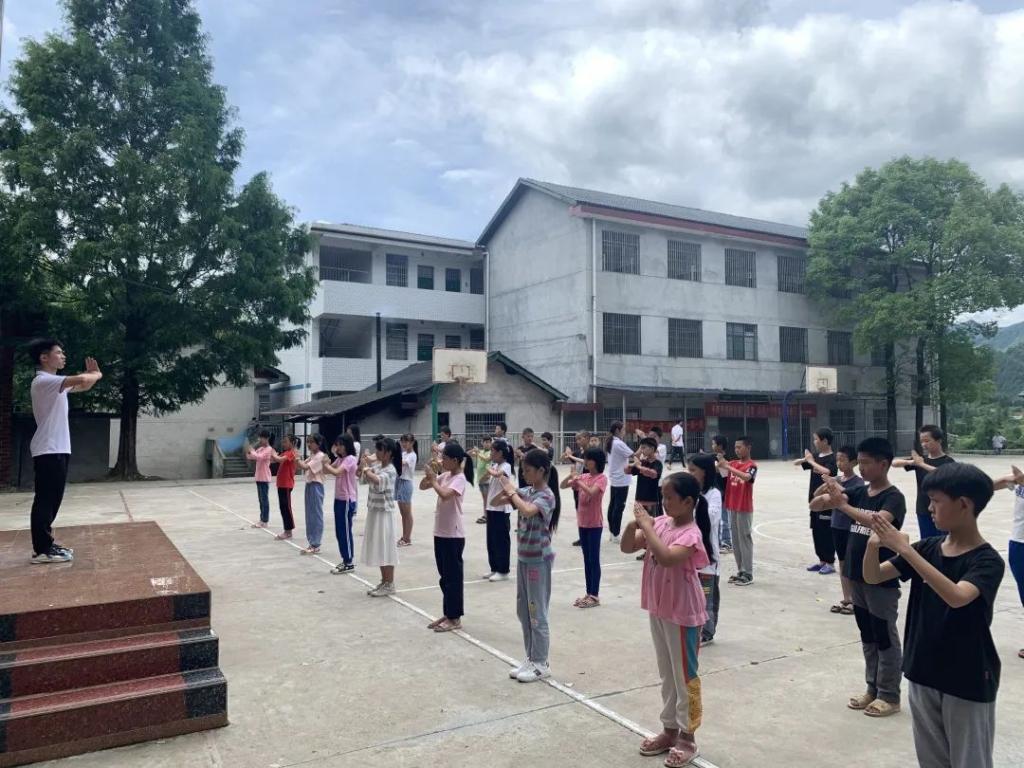 由“仁爱班”副班主任陈稷给孩子们上英语课、副队长肖鹏给孩子们上武术课、成员谭茜予和付凯文给孩子们上舞蹈课。另外,老师给孩子们科普党史知识并观看相关视频。邵阳洞口渣坪九年一贯制学校的孩子们热情高涨,积极主动地学习知识。