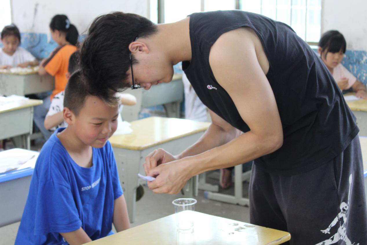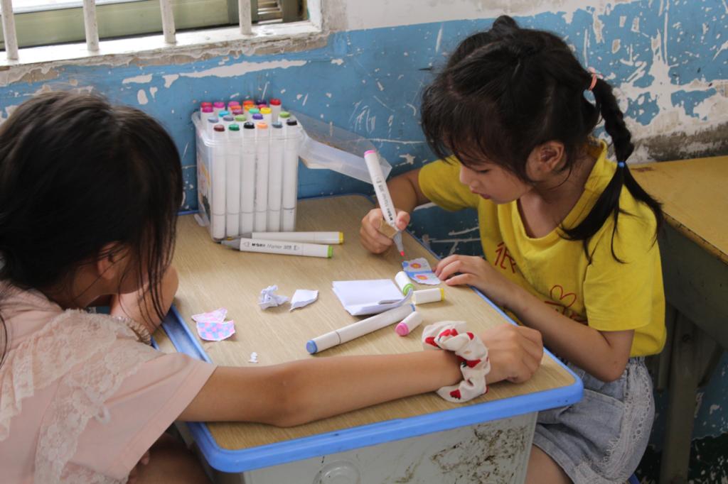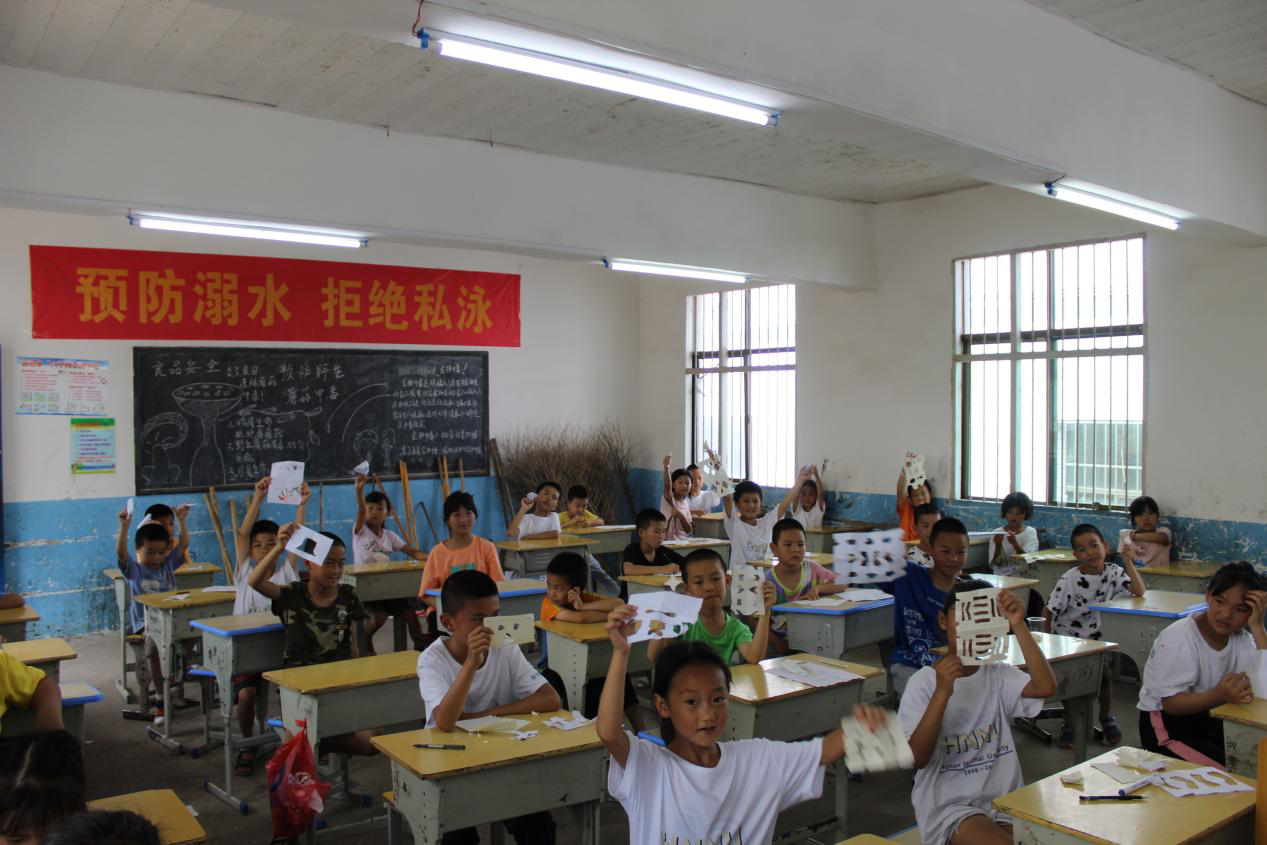 在孩子们遇到困难时,队员们也都会积极地讲解,耐心地启发,让每个孩子都能享受到艺术之美、劳动之乐。最后,每个孩子都完成了自己的作品,并骄傲地向我们展示。