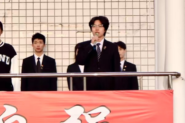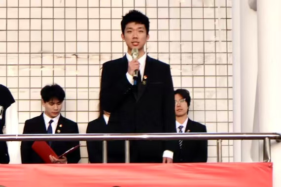 来自2024级体育教育中外合作办学专业的顾汉唐进行国旗下演讲,他演讲的主题是《拥抱人工智能,做时代智慧青年》。他指出:在科技飞速发展的当下,我们大学生要以批判的眼光看待人工智能,要以正确的态度和方式运用人工智能。他希望当代青年拥抱科技,善用科技,用智慧和努力书写属于我们的精彩篇章。