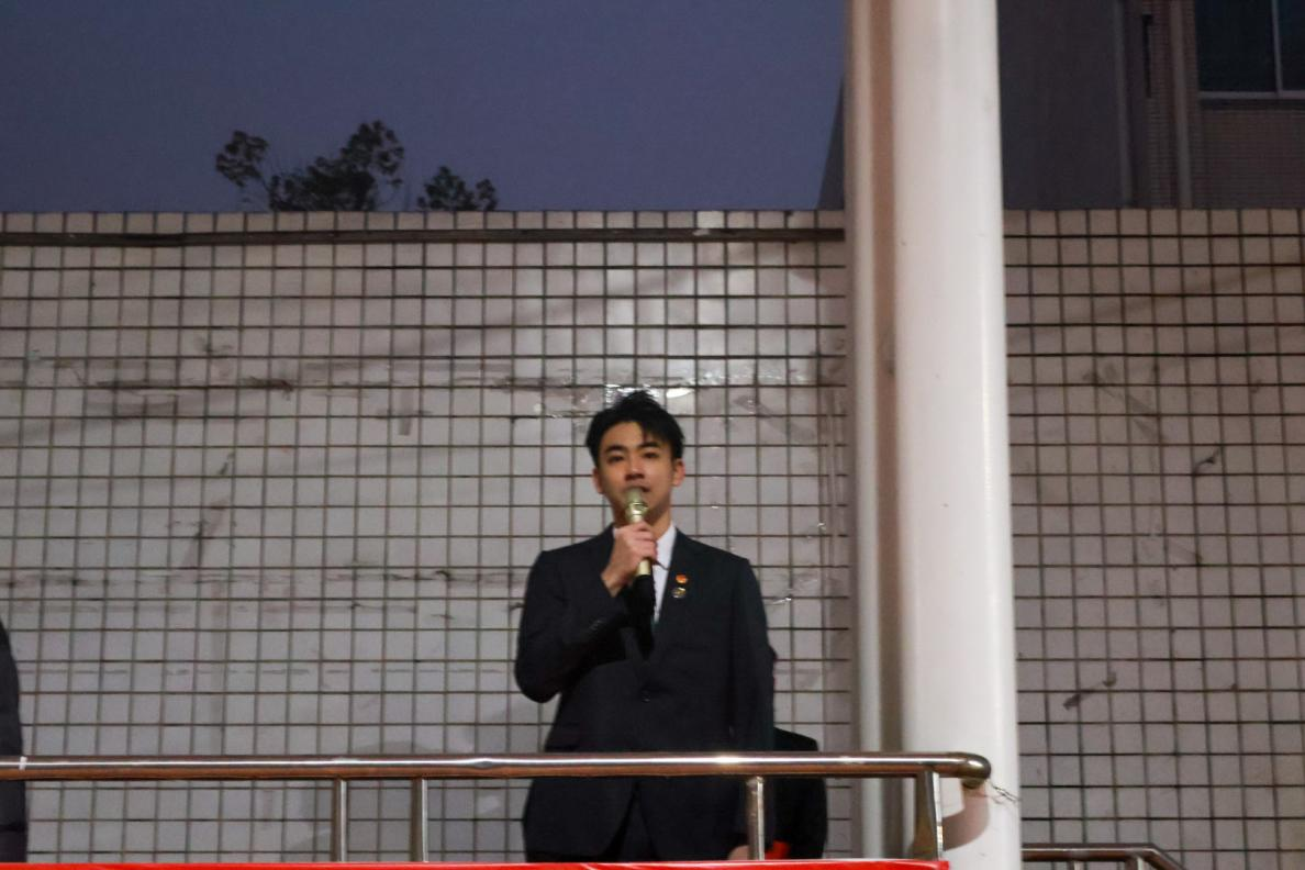 来自2022级体育教育中外合作办学专业的巫剑恒同学在新学期首次升旗仪式上,分享他对新学期的展望。第一,拥抱变化,无畏挑战。第二,培养兴趣,挖掘潜能。第三,守护健康,平衡生活。他以亚冬会短道速滑运动员公俐选手为例,诠释了挑战自我的精神。呼吁大家积极参加社团活动,合理规划好作息时间,以“厚载博学,行健自强”的院训精神为指引,为自己的未来书写精彩篇章。