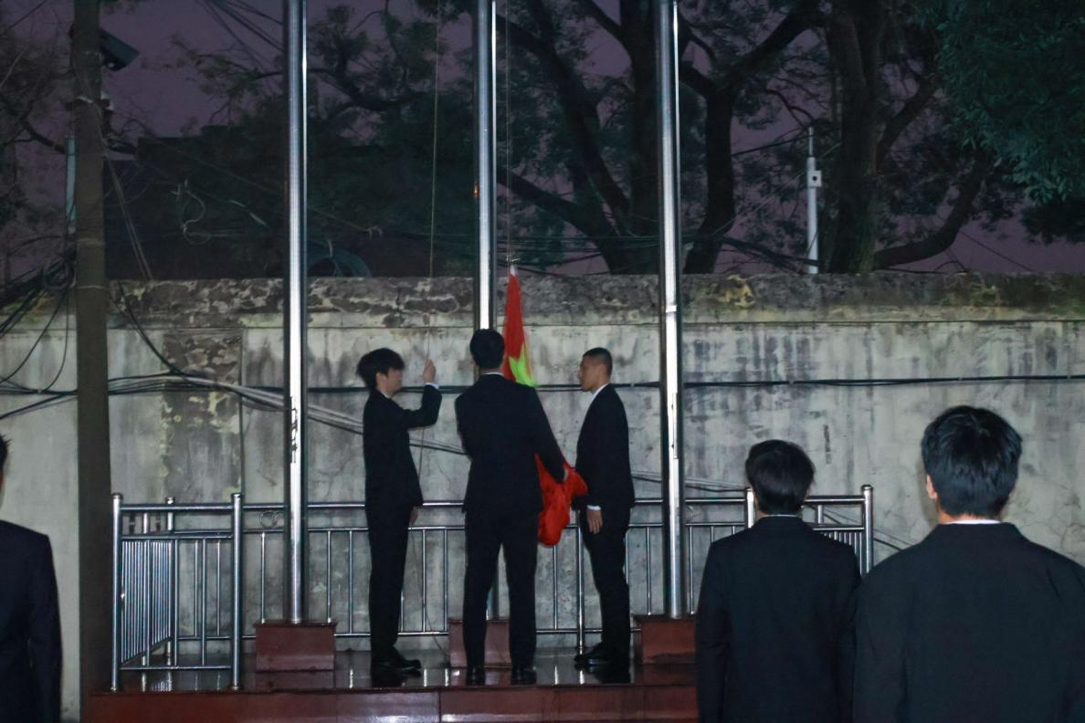 升旗仪式第一项,升国旗、奏唱国歌。