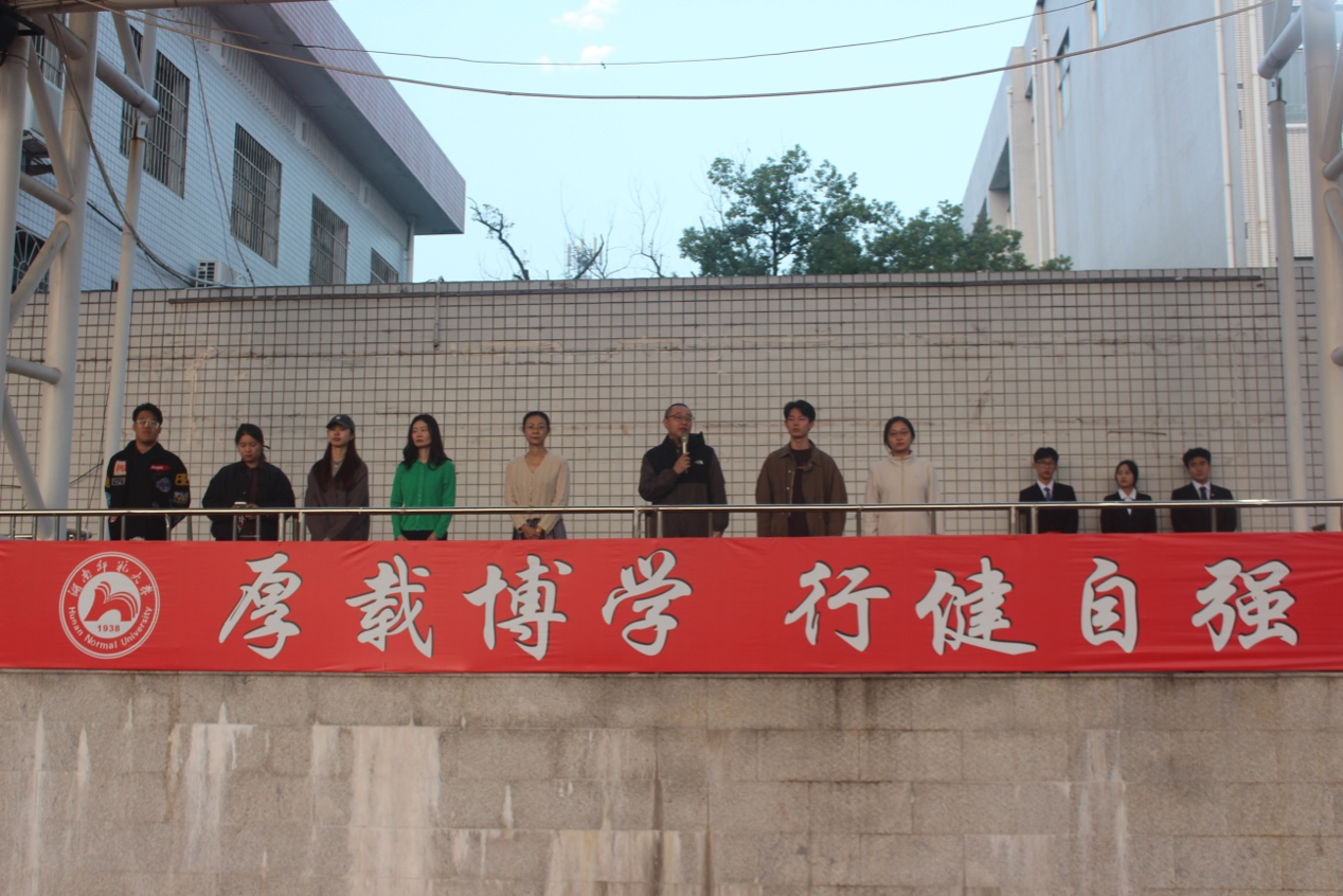 (通讯员:王可馨)11月4日早,我院于田径场举行了2024-2025学年上学期第十周升旗仪式。英国365集团党委副书记李皓、学工办主任夏禹、团委书记王静、学工办副主任李丽、2022级辅导员陈玲和李羽鑫、2023级辅导员梁一然和伍艾、2024级辅导员孔祥蕊和张宇桁出席本次升旗仪式,2022、2023、2024级全体本科生参加此次升旗仪式。