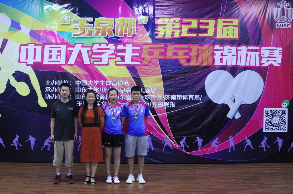 (校乒乓球队供稿)7月14日,由中国大学生体育协会主办,山东大学和济南玉泉森信大酒店承办,山东省教育厅等单位协办的第23届中国大学生乒乓球锦标赛超级组的比赛在济南玉泉森信大酒店体育馆圆满落幕。经过6天的激烈争夺,我校乒乓球队获得女子双打第一名;女子团体第三名;女子单打第五名的佳绩!