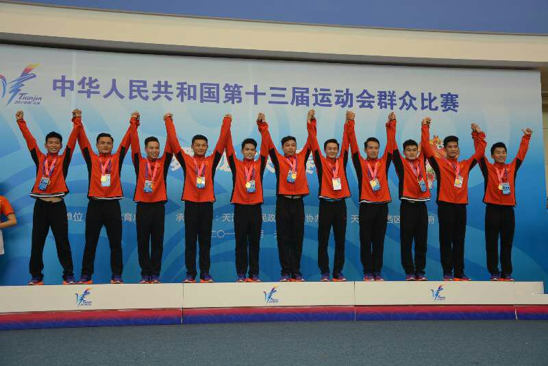 (供稿 校舞龙队)7月9日,第十三届全运会群众比赛舞龙项目决赛在北京师范大学天津附属中学举行。经过激烈角逐,以我校舞龙队为班底组建的湖南省代表队脱颖而出,获得舞龙自选套路冠军,传统套路季军的佳绩,这是湖南省代表团在本届全运会上获得的首枚金牌。