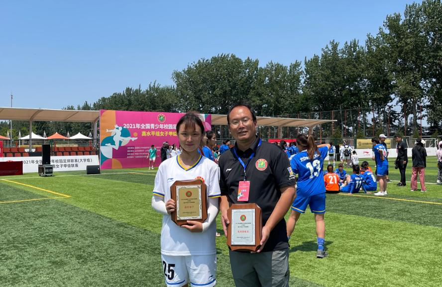 (通讯员 周颖)6月12日至6月23日,由全国青少年校园足球工作领导小组办公室主办,省级教育行政主管部门、全国校足办认定的有关机构承办,中国大学生体育协会协办的2021年全国青少年校园足球联赛大学组高水平组女子甲级联赛在山东潍坊鲁能足球学校举行,我校女子足球队首次参加全国赛事获得第六名的好成绩,同时金艺同学以11粒进球获得本次比赛的最佳射手,黄文宾老师获得优秀教练称号。