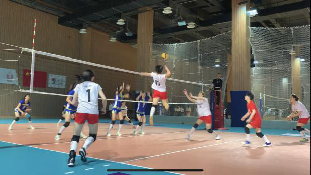 小组赛阶段,湖南师大女排先后迎战了中国海洋大学、华中师范大学、北京航空航天大学、复旦大学、哈尔滨工程大学。第一场小组赛,对阵网口优势明显的中国海洋大学,队员按照教练布置的战术,坚持以跑动来扯开对面的拦网防线,比分一度十分焦灼到24平,虽然最后遗憾惜败,但是第一场球帮助大家更快地适应了场地和氛围,为后续的比赛打下了坚实的基础。第二场小组赛,湖南师大女排遇上了老对手也是好朋友的华中师范大学女排,互相了解的双方隔网对垒,战术布置也是针锋相对,在实力相当的情况下,队员们严格贯彻准备会布置的战术意图,发挥自己的长处,积极地调动场上氛围,有效遏制了对方的主要得分点,最终顶住压力,以3:0取得了本场比赛的胜利。