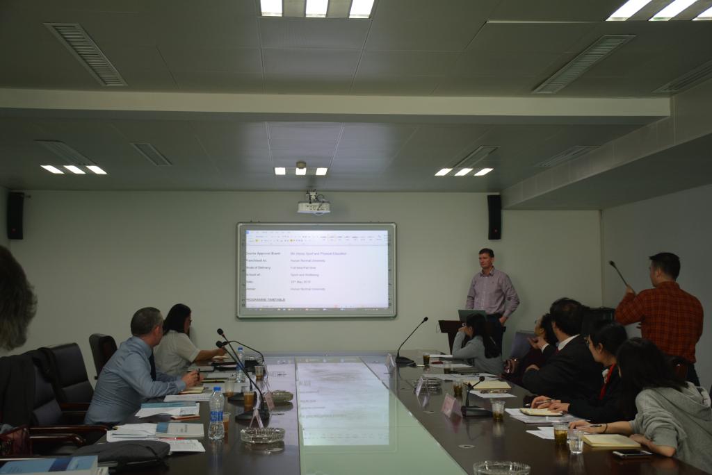 从17日下午至19日,中英双方教学团队就引进课程教学展开紧张而友好的工作讨论。学院中英合作办学项目办公室受院领导委托向英方做了中方教学模式报告。英方课程负责人对中方教师针对体育教育专业学生教学需求进行了教学和考评方式介绍,表示老师应针对不同学生性格特点、水平、兴趣的参差不齐而调整教学方式及内容。
