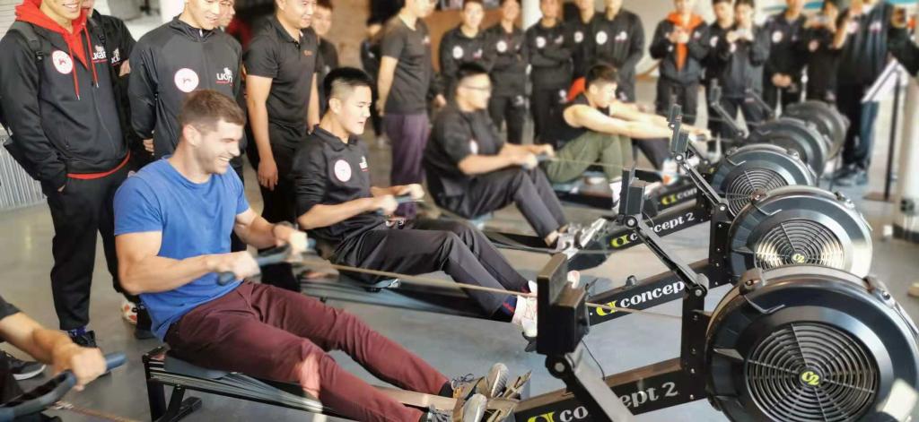 领客体育的专业教练员、救生员以近水安全、紧急救援和陆地赛艇体验为主题,为湖南师大中外合作办学体育教育专业19级新生带来了生动活泼的体育实践课程。