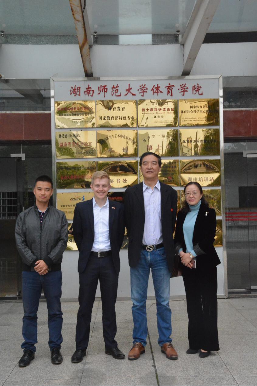 (通讯员 戴温雅 余友 向优兰)2019年11月12日,院长汤长发在鸿健楼接待来访的英国林肯郡代表团成员,中英足球中心主任罗鹏飞(Rob Avery-Phipps)、林肯郡中国事务顾问林铁东等一行,校国际交流合作处副处长李苗陪同访问。