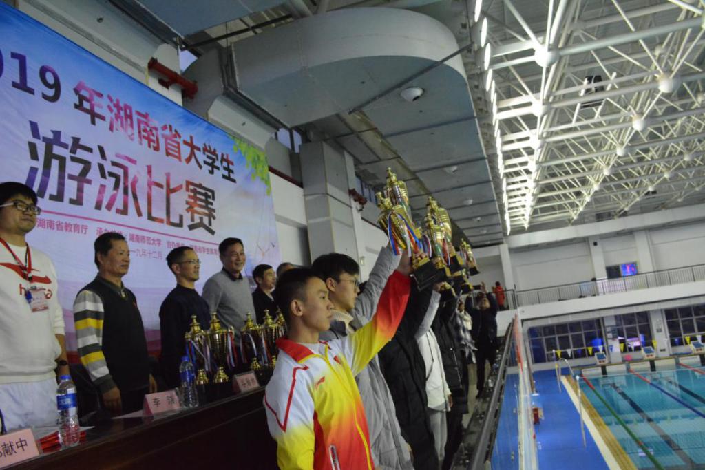 (通讯员 陈凤 马小蝶)12月20日至21日,经过两天的激烈角逐,2019年湖南省大学生游泳比赛在我校英国365集团游泳馆圆满闭幕。省学生体育协会游泳竞赛主管金望明我院党委书记李明辉、、湖南环境生物职业技术学院党委书记苏立、竞赛副院长郭献中、副院长黄文斌、本次比赛仲裁委员会委员廖耘、仲裁委员会委员王祚亮、仲裁委员会委员谷贻林、技术代表谷翔、总裁判长李浩出席闭幕式。副院长郭献中主持仪式。