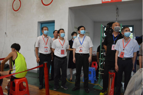 王瑰曙一行逐一深入篮球场、武术馆、田径场、游泳馆、监控中心等场地,查看了组考安排、设备运行、考试流程、考生备考等情况,听取了相关工作人员在防疫物资储备、组考工作统筹、应急预案应用等方面的工作汇报。王瑰曙充分肯定了我院组考工作,并对我院所有考务人员的辛勤付出表示感谢。他希望我院进一步加强组考管理、完善后勤服务、保障考生权益,力求疫情防控体系下此次体育高考圆满落幕。