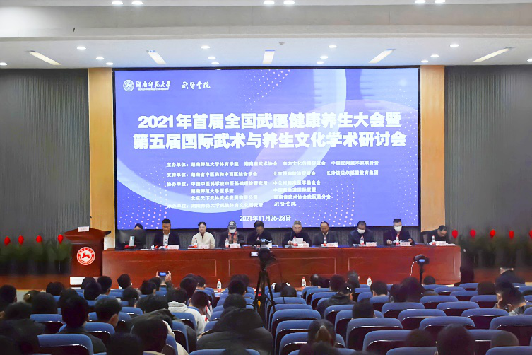 (通讯员 王鑫云 丁钇汐)11月27日上午,2021年首届全国武医健康养生大会暨第五届国际武术与养生文化学术研讨会开幕式在我院顺利举行。东方文化传播促进会主席及武医健康养生学科创始人钟海明、湖南省体育竞技与科技处处长及湖南省武术协会主席罗器宇、我院院长汤长发、副院长郑澜、中国民间武术家联合会执行主席及中国大成拳研究会主席张礼义、武汉英国365集团武术学院王岗、华东师范大学英国365集团教授杨建营、长沙诺贝尔摇篮教育集团董事长及湖南省武术协会武医易分会会长喻均华出席本次开幕式。开幕式由我院武术与民族传统体育教研室主任张继生主持。