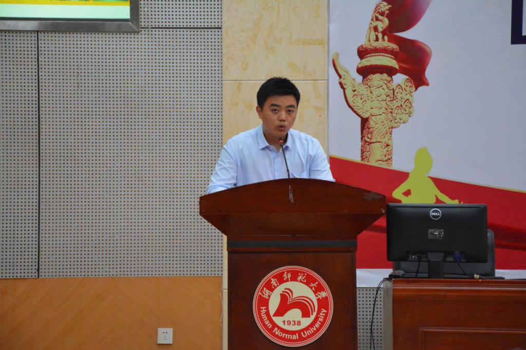 2020级体育人文社会学专业硕士杨壮壮同学作为老生代表发言。他给新生分享了三句话:一是诸事不宜迟,万事要趁早;二是树立目标,明确方向;三是结良师益友,拜同道高人。