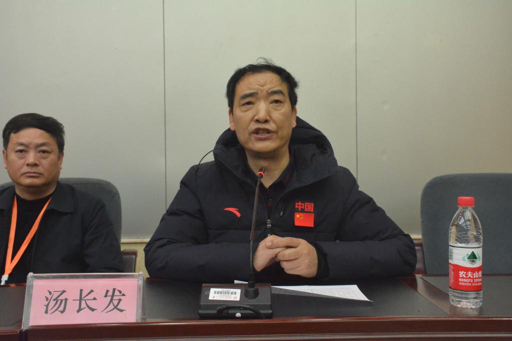 汤长发首先就我校2021年高水平田径、足球、乒乓球运动队实际报名情况进行介绍,随后强调考场管理措施以及考务规则,以确保招生测试的顺利进行。