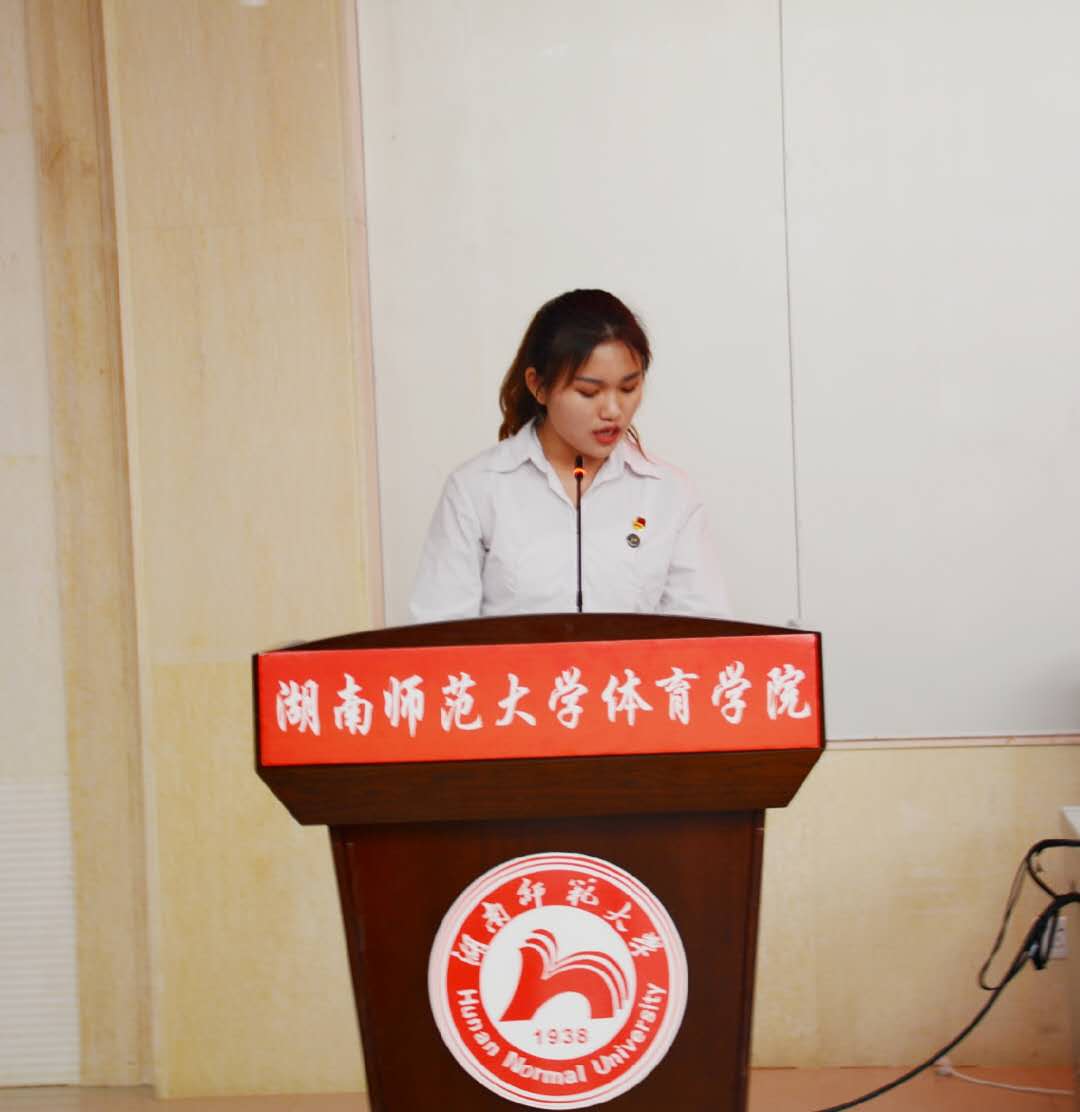 2016级运训田径班张盼盼和2016级体教足球班肖越用自己的实践经验给学弟学妹们加油鼓劲,鼓励他们做到工作上勤勤恳恳,思想上与时俱进,公益上奉献真心,生活上自强不息,未来勇于逐梦。