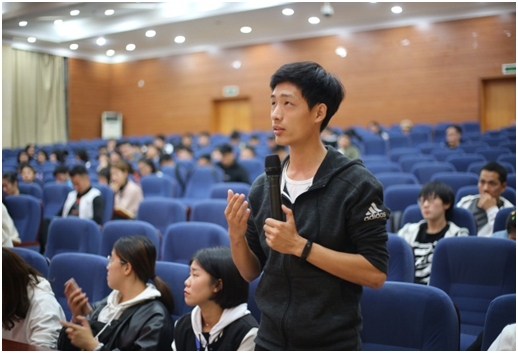 夏运平作为自主创业代表,给大家讲述了他的创业之路。他希望大家在学习和生活中发扬“厚载博学,行健自强”的院训精神,鼓励大家有梦想要勇敢闯,有想法要敢去做。最后,他给大家提出了三点建议:一是要勤与导师沟通,二是要提前确定就业方向,三是要学会感恩。