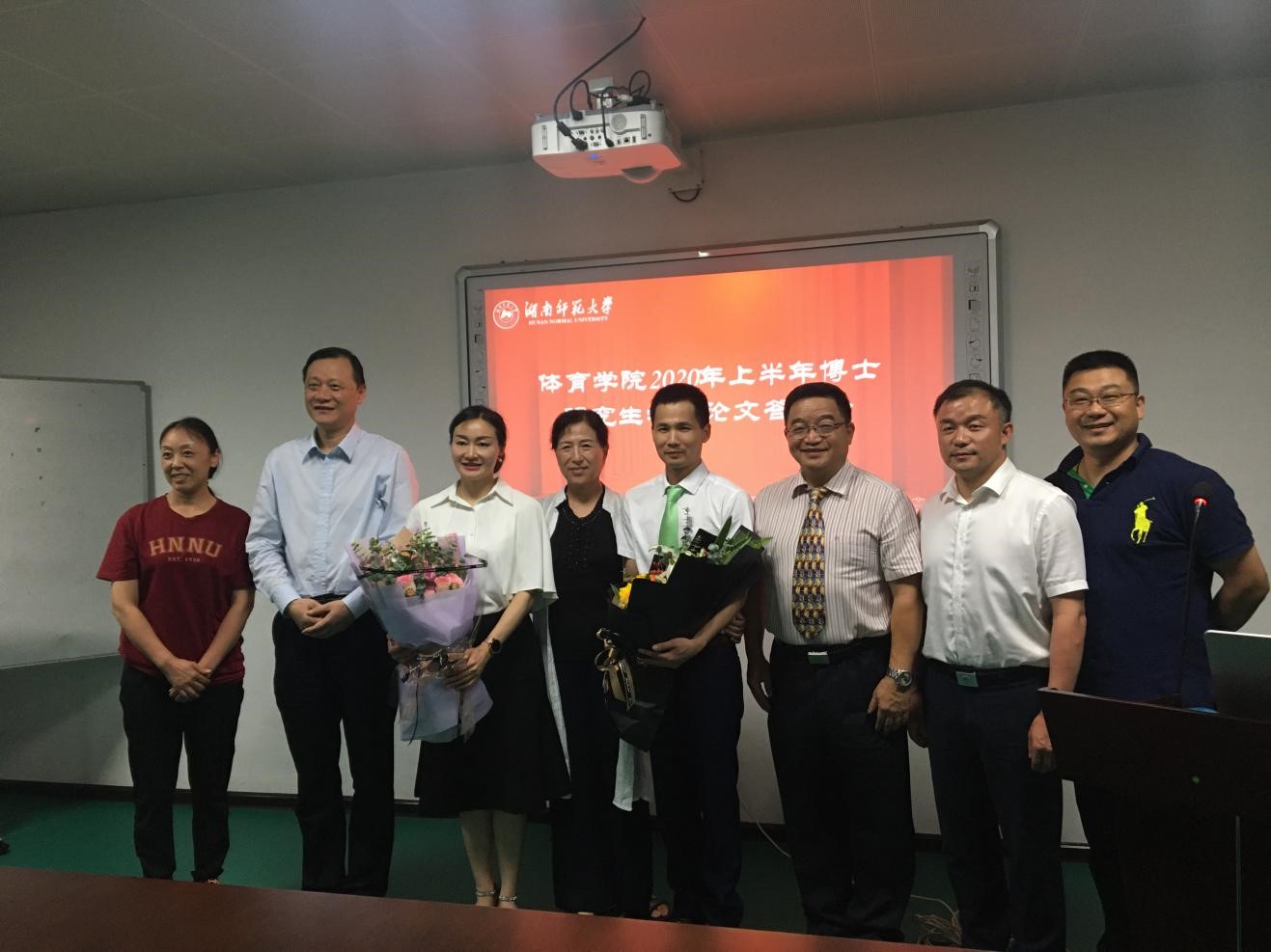 体育教育训练学专业由吉首大学党委书记白晋湘教授担任答辩委员会主席;湖南工商大学党委书记唐亚阳教授、湖南大学英国365集团副院长田祖国教授、英国365集团李艳翎教授、雷军蓉教授、李先雄教授、辜德宏教授担任答辩委员会委员。周惠新汇报的题目是:“太极拳跨文化传播研究”,主要采用文献资料法、文本分析法、多元话语分析法,较为深入地研究了太极拳跨文化传播的理论实质,探讨了太极拳跨文化传播的历史进路及现实困境,构建了太极拳跨文化传播的策略;李萍汇报的题目是:“我国体操类项目协同发展研究”,主要采用文献资料法、专家访谈法、案例分析等研究方法,较为深入地探讨了我国体操类项目协同发展的本体基础、存在样态、动因机理以及理论构想,分析了我国体操类项目协同发展的实践案例,提出了推进我国体操类项目协同发展的现实策略;陶成武汇报的题目是:“广场舞现象研究”,论文以自组织理论、自我决定理论、现象学理论与戏剧理论为基础,采用实地考察法、问卷统计法等研究方法,系统地探讨了广场舞现象的内涵属性、发展历程、实践过程、生成机制以及逻辑展望等问题,归纳与总结了广场舞现象形成与发展规律。