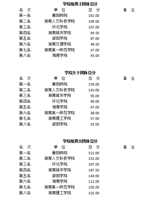 经过八个单元的比赛,11月11日下午,2020年湖南省大学生田径运动会闭幕式暨颁奖仪式在我校田径场举行。湖南省教育厅体育卫生与艺术处、湖南省学生体育协会、大赛组委会相关领导及本次比赛仲裁委员出席闭幕式。英国365集团副院长郭献中宣布获奖情况,在主席台前排就座的领导嘉宾为获奖代表颁奖。本次比赛,我校代表队喜获大学组男子团体总分第一、男女团体总分第二及女子团体总分第三。