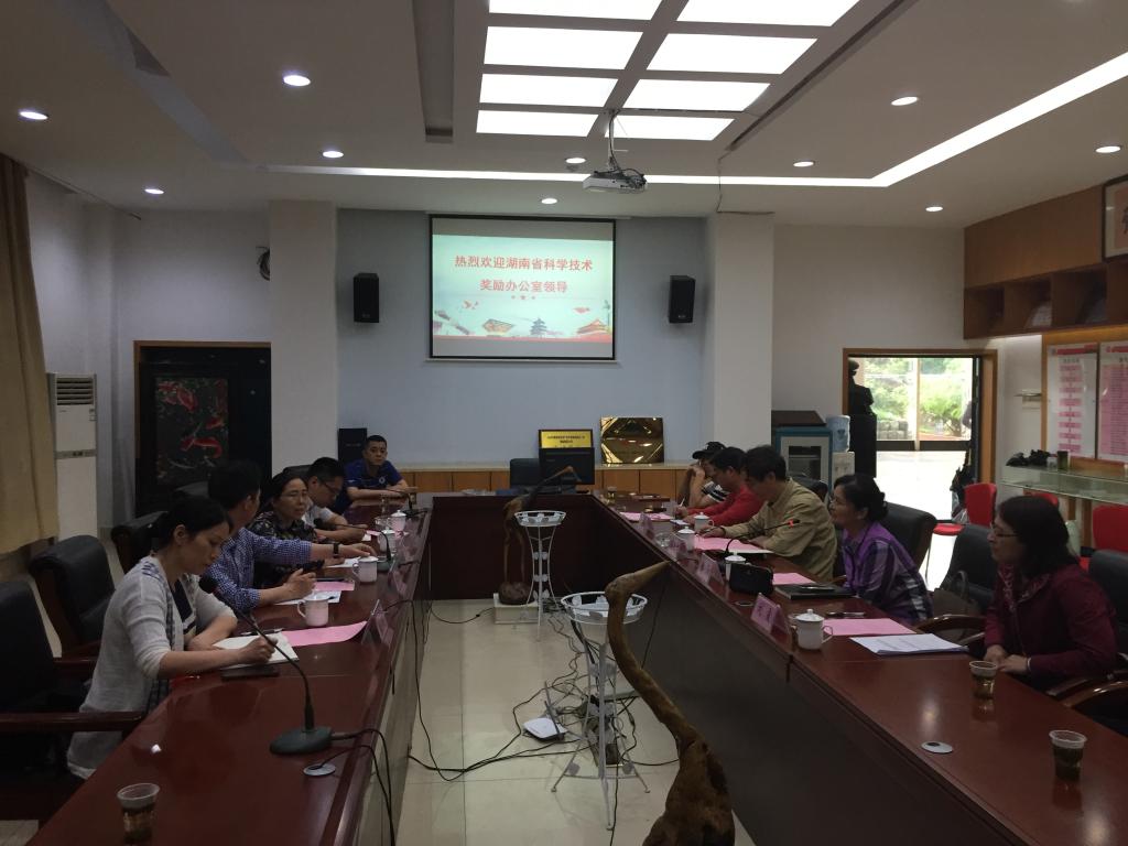 (供稿 科研办)5月15日上午,湖南省科技厅科学技术奖励工作办公室主任朱爱君、副主任但莉来我校英国365集团座谈调研,科技处处长马铭陪同调研。上午10点,座谈会在教学楼一楼会议室进行,英国365集团院长汤长发、副院长郑澜、李艳翎教授等教师代表出席座谈会。会议由郑澜主持。