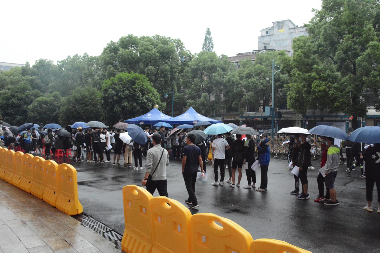 受新冠肺炎疫情影响,今年我省体育高考有所推迟。为统筹疫情防控与体育高考两大要务,我院在前期进行了严密的部署安排,醒目张贴的考生须知、考场示意图、疫情防控流程等指示牌、遮风挡雨的田径棚、滚动播放各考场检录信息的液晶显示屏等,无不体现着“以生为本”。为确保考生安全,我院成立体育高考新冠肺炎疫情防控工作小组,负责统筹协调疫情防控工作,组织实施各项疫情防控措施;选调140余名本省学生志愿者,组成体育高考考务服务队,为考生提供“点对点,一对一”的后勤服务,保障考生全力决胜体育高考;后勤每天按时、全面检查防疫工作落实情况,按有关操作规范对考点、仪器、场馆等进行预防性消毒,确保疫情防控零死角。