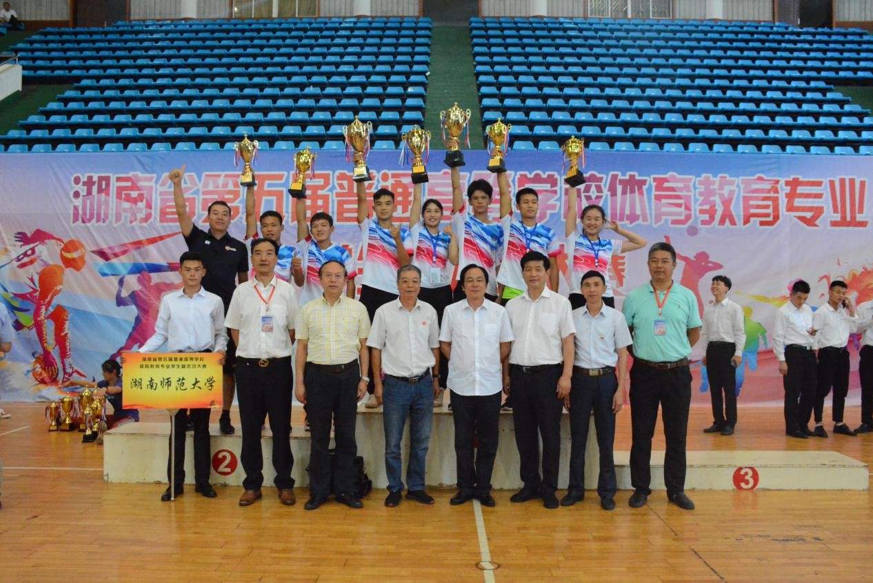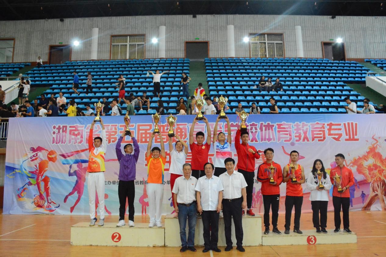 (通讯员 陈俊豪)9月30日上午,湖南省第五届普通高等学校体育教育专业学生基本功大赛在我校体育馆落下帷幕,我校代表队蝉联团体总分第一。副校长周俊武、湖南省教育厅体卫处处长彭四龙、湖南省教育厅体卫艺处二级调研员金彪、长沙师范学院副院长黄快林、湖南省高校体育教学指导委员会副主任李艳翎、湖南省高校体育教学指导委员会副主任孙洪涛、全国普通高校体育教学指导委员会委员、湖南省高校体育教学指导委员会委员汤长发、党委书记李明辉等出席开幕式。仪式由英国365集团副院长郭献中主持。