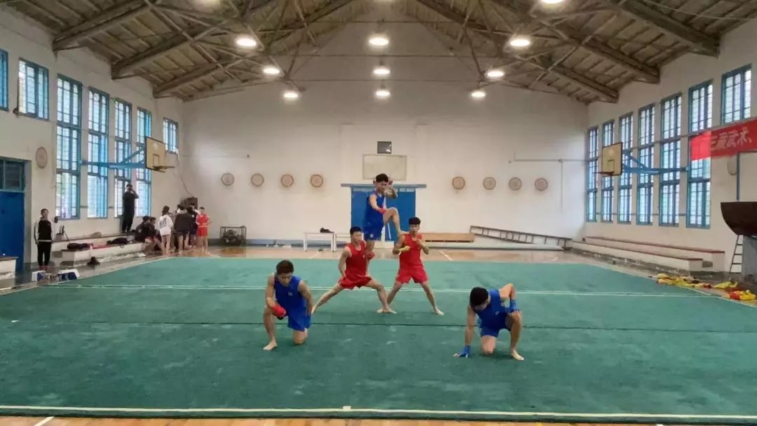 我院民族体育文化研究所所长张继生教授作为仲裁委员会主任发表讲话,他要求各位同学充分发挥自身水平,赛出风采,圆满地完成每一个项目。同时也要求全体裁判员执裁坚持“公平、公正、公开”的原则。在集体项目中,每位同学紧跟乐曲节奏,一招一式整齐划一,配合默契;在个人项目中,刀、棍、剑、拳等动作刚柔并济,走势行云流水,尽显筋骨,而品势刚劲有力,鞭腿更是“快、准、狠”。
