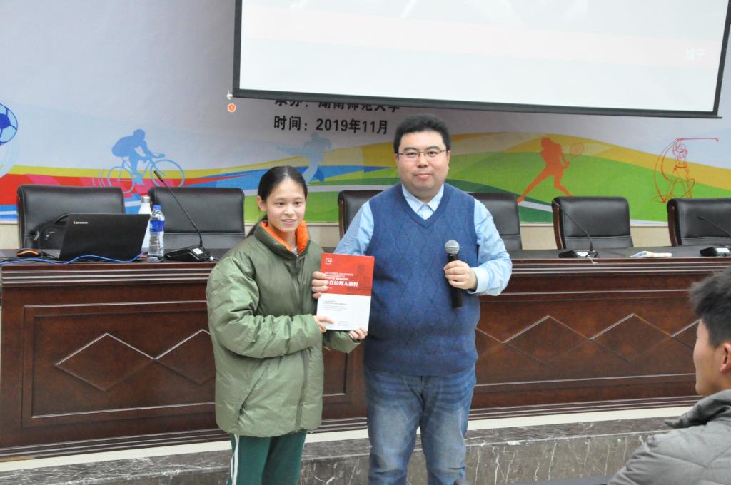 本次讲座的目在于让同学们了解体育行业目前所需人才,并向同学们介绍国家体育总局人力资源开发中心担任测评机构的体育经理人(三级)等级培训与能力测评项目,为体育产业的蓬勃发展培养优秀的体育经营管理人才,并为大家区分体育经理人与体育经纪人之间的区别。在讲座中纪宁向同学们讲述了体育经理人的概念及自己的成长历程和成功秘诀,还与同学进行了多次问答互动,讲述时思路开阔,语言风趣,互动时幽默诙谐,给同学们留下了深刻的印象。
