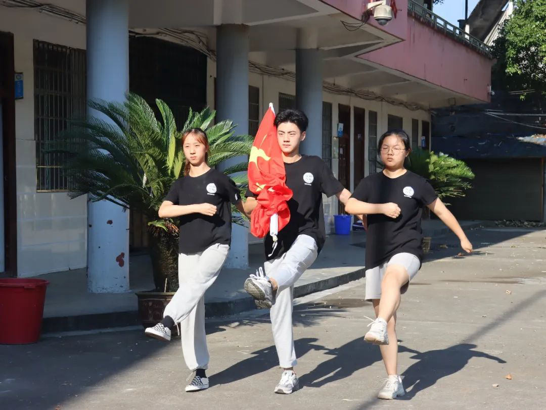 第一项由我院的三位致知力行实践团队员出旗。第二项升国旗奏唱国歌,湖天桥小学全体学生行少先队员礼。第三项致知力行实践团队长王奇翔发言。最后升旗仪式结束,致知力行实践团老师们与湖天桥小学老师、学生们一起合影留念。