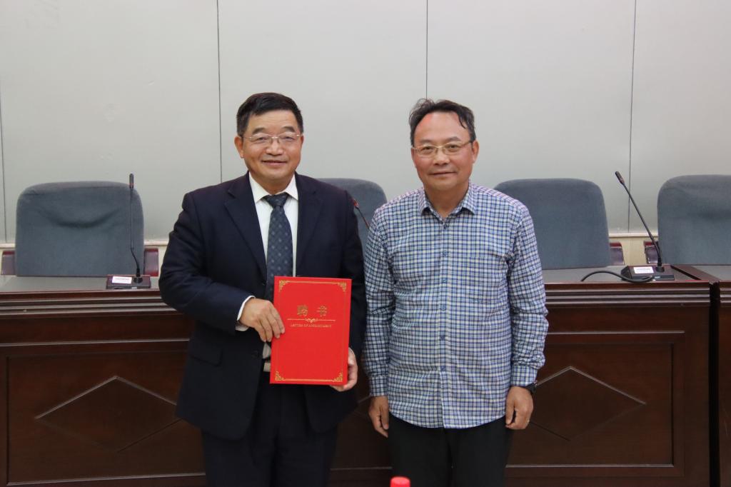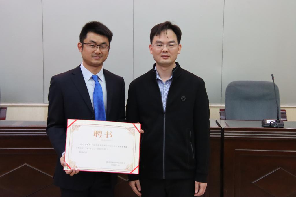 (李艳翎主席为秘书长文志祥、监事长龙伟颁发聘书)