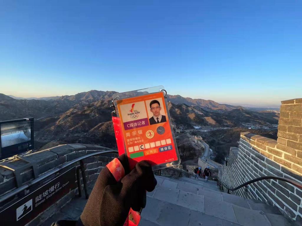 在本次志愿者服务工作中,周宗锴主要负责冬奥会延庆赛段(延庆八达岭长城、延庆世界葡萄产业园)的奥运宣传工作,参与了2月3日的火炬传递长城赛段转播拍摄、2月4日开幕式团队转播拍摄、小海坨山滑雪赛点拍摄、八达岭长城、八达岭高铁站、佛爷顶气象站拍摄,采访了成龙、马龙、杨倩等冬奥火炬手。