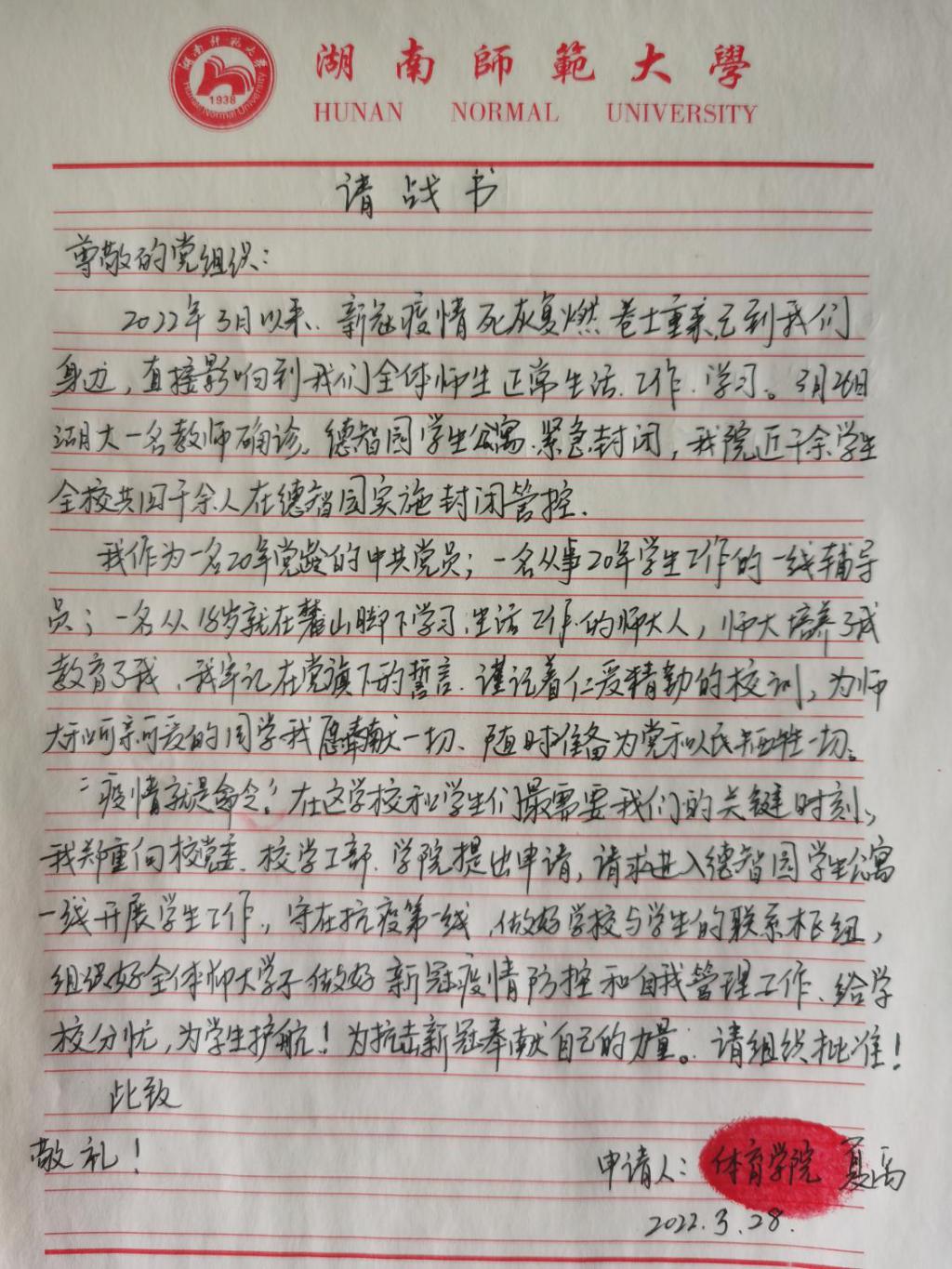 3月以来,新冠疫情死灰复燃,卷土重来,直接影响到我院全体师生正常生活、工作、学习。3月26日,湖大一名教师确诊,德智园学生公寓紧急封闭,我院近千余学生,全校近四千人在德智园内实施封闭管控。
