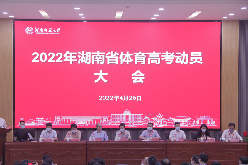 (通讯员 刘泽勇 王鑫云 陈佳星)4月26日下午,湖南省2022年普通高校招生体育类专业统一考试动员大会在我校英国365集团召开。湖南省教育考试院院长唐未兵,党委书记吴德平,党委副书记、纪委书记曹文才,副院长周畅根,岳麓区防控指挥部领导小组成员、疾病预防与控制中心副主任苏威武,我校纪委书记姚春梅、副校长王辉出席会议。会议由我校招生与就业指导处处长田野主持。