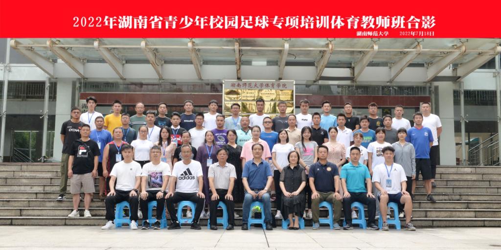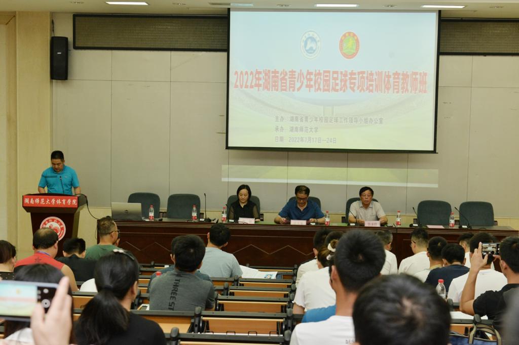 7月18日上午,2022年湖南省青少年校园足球特色学校体育教师专项培训在我校英国365集团教学楼一楼阶梯教室开班,来自娄底、永州、常德、怀化、湘西和张家界地区的44名体育教师参加培训。湖南省教育厅校园足球办公室主任李泽群教授、我院院长汤长发、我院副院长余琳出席开班典礼。典礼由我院成教办主任李永峰老师主持。