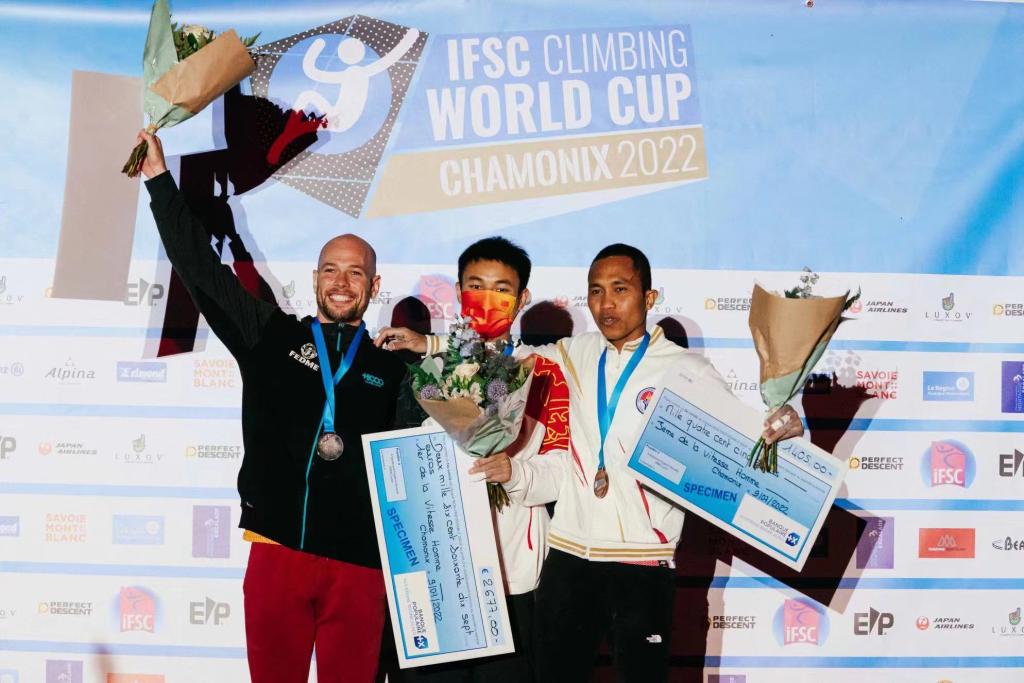 受疫情影响,中国攀岩队两年多时间没有外出参加世界杯赛事,但即便如此,在一周前的维拉尔站中,中国攀岩队速度组本赛季首次亮相便包揽了男女组冠亚军。而在本站比赛中,中国队继续展示了强大的优势,在男子预赛中,张亮、曹龙、龙金宝和龙建国便分别列为第二位至第五位。虽然在八进四轮中,中国选手龙见国、曹龙、张亮均因失误没能完赛。但在今晨结束的决赛中,龙金宝冷静出战,以5秒11的成绩拿下个人首枚世界杯金牌。对于成绩的取得,龙金宝表示“感谢国家,感谢领导,感谢攀岩国家队,是你们的培养才有机会参加本次世界杯的比赛,获得这个好成绩!我会继续加油,为国争光,为校添彩!”