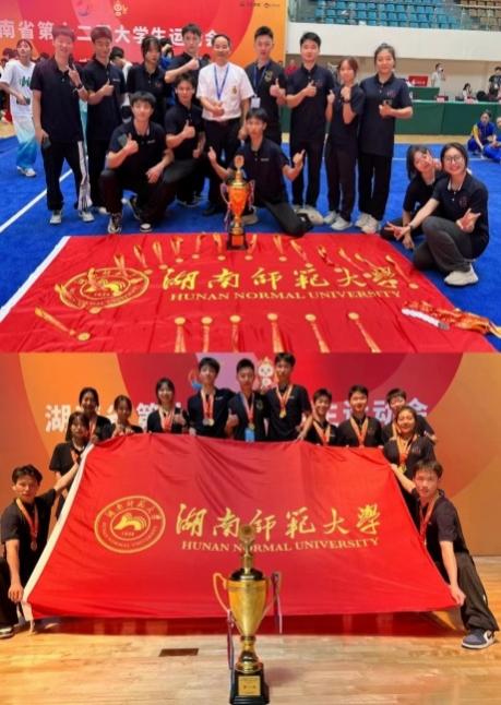我校武术代表队克服重重困难,他们用行动展现出师大体育人行健自强的风貌,发挥自身最大潜能、超越进取,敢于拼搏,在此次比赛中不负众望、取得佳绩,斩获13金、5银、1铜,并且获得团体总分第一的优异成绩,为学校争得荣誉。