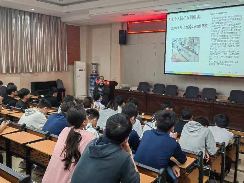 李波作大会讲话,明确此次会议的目的。希望各位同学认真学习学校组织的安全教育活动,端正学习态度,杜绝走过场。通过典型事故案例分析,引起各位同学高度重视,深刻认识到安全的重要性。在实验室做实验要注意安全,做到防患于未然。