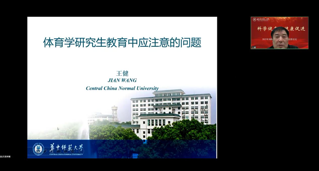 首先由汤长发教授做“运动促进体质健康防治慢病的作用与机制研究”的主题讲座。汤长发教授结合多年的实践经验和研究成果,与当今时代现状紧密联系,对促进人口健康具有重要意义。接着由石岩教授做“研究生学位论文写作的道与术”的主题讲座,石岩教授从聚焦研究生学位论文写作、研究生学位论文设计之道、研究生学位论文写作之术三个方面进行论述。再由段锐教授做“运动生理学机遇与挑战”的主题讲座。然后由汪晓赞教授做“我国体育与健康课程与教学改革新思路和新发展”的主题讲座。最后由王健教授做“研究生学习中应注意的问题”的主题讲座。他们的讲述娓娓道来,引人入胜,所讲述的主题深刻且意义重大,是一次思想的交流与碰撞,为各自在以后所研究的领域提供了新的思路与突破口。